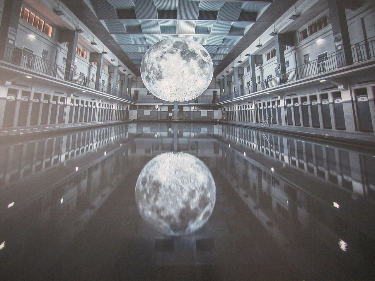 Plus récemment, en 2017, l’artiste plasticien britannique Luke Jerram (né en 1974) a offert aux nageurs de la piscine Saint-Georges de Rennes l’expérience d’une baignade au clair de lune, grâce à son installation « Museum of the Moon », un astre géant placé en surplomb du bassin. Cette lune de sept mètres de diamètre a été gonflée à l’hélium et éclairée de l’intérieur. Sa surface reproduit avec une grande précision des détails issus d’images provenant de la NASA. Avec une échelle approximative de 1:500 000, chaque centimètre de la sculpture sphérique de Jerram représente 5 km de la surface lunaire.